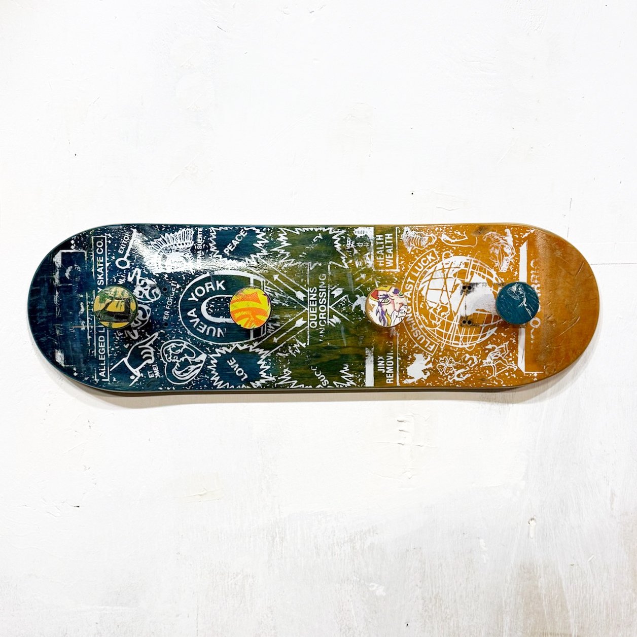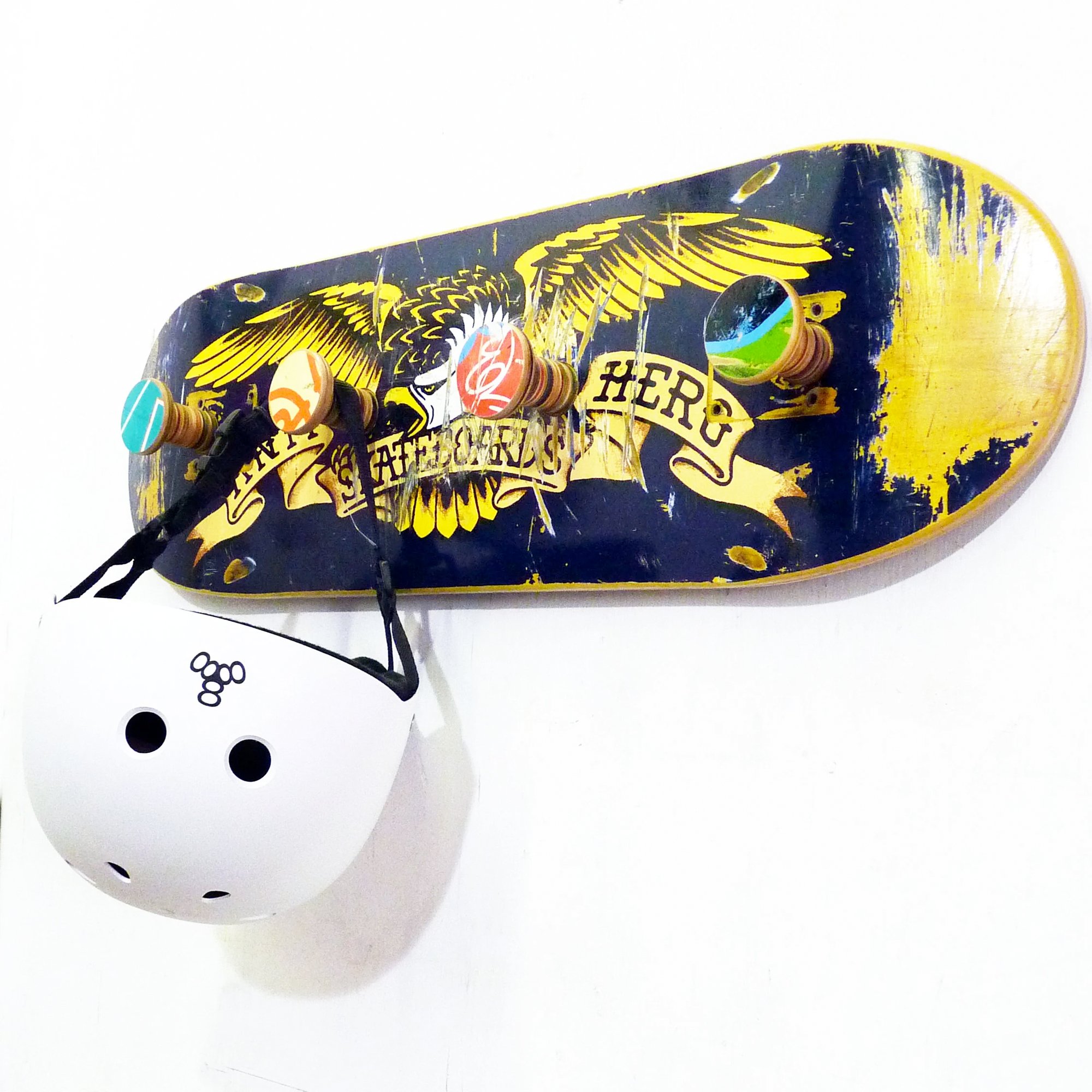 This listing is for a Wall Mounted Recycled Skateboard Coat Rack with a skateboard back board and (4) four recycled skateboard peg hooks great for hanging coats, helmets, bags and other gear. FREE Domestic (USA) Shipping and discounted International shipping.