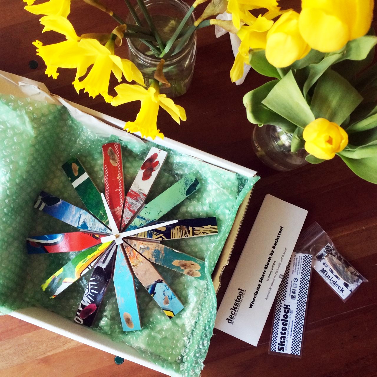Please select a color preference when you place your order. Due to the colorful nature of recycled skateboards, all Skateboard Clocks will feature multiple colors. We will do our best to feature your color(s) selection prominently. Please email or message with any special requests.